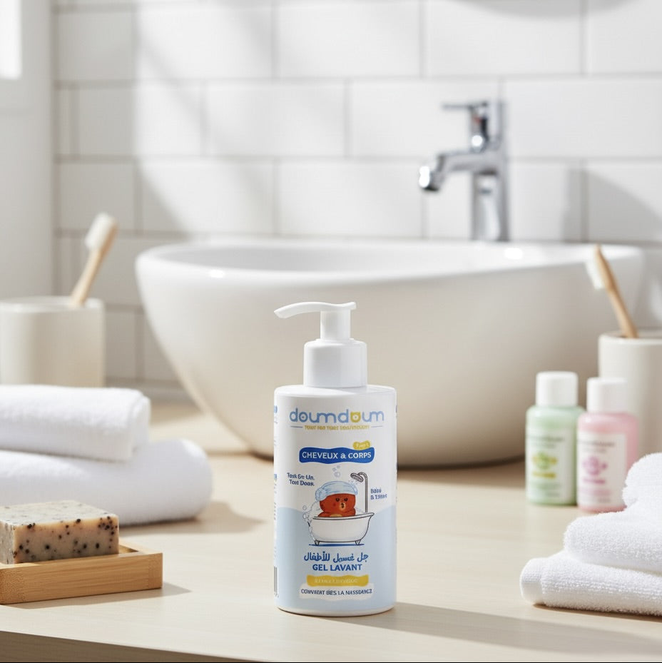 Le Gel Lavant 2 en 1 Doumdoum offre une toilette complète du corps et des cheveux en douceur. Sa formule non irritante respecte la peau sensible et évite les picotements aux yeux, rendant chaque bain agréable. Transformez ce moment quotidien en un instant de plaisir et de complicité grâce à ce soin pratique et efficace.